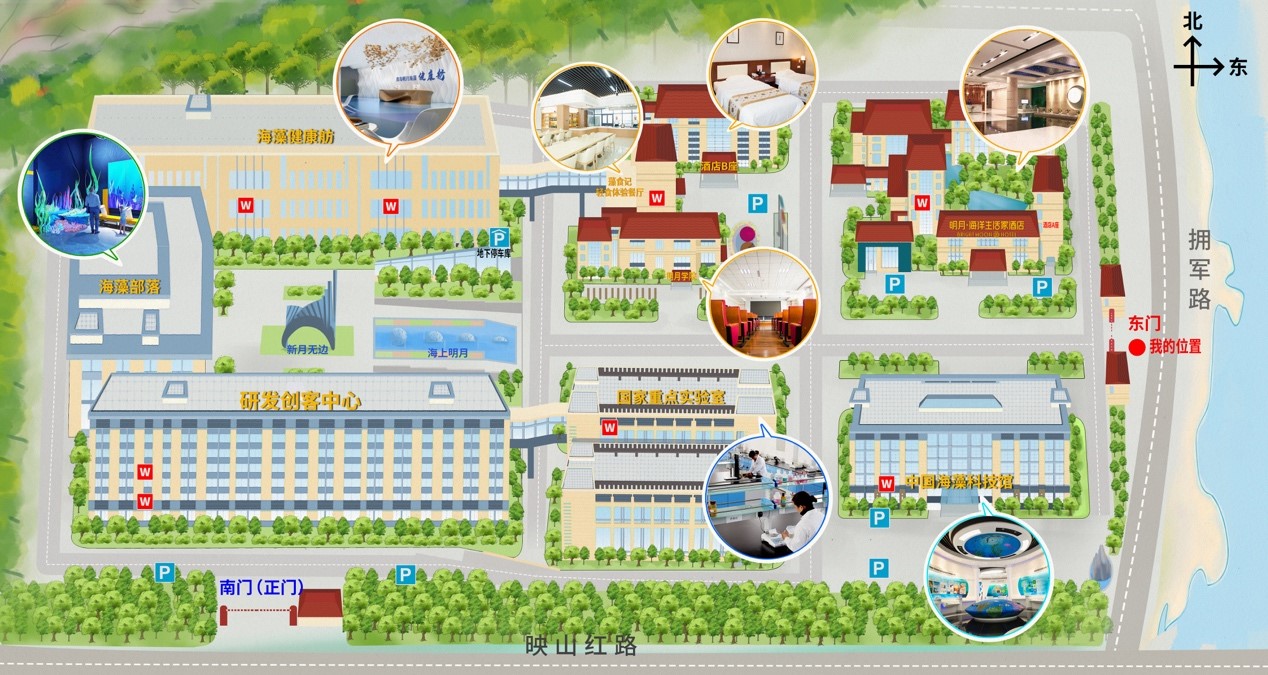 參觀路線:中國海藻科技館—國家重點實驗室—海藻部落—海藻健康舫—海洋生活家酒店