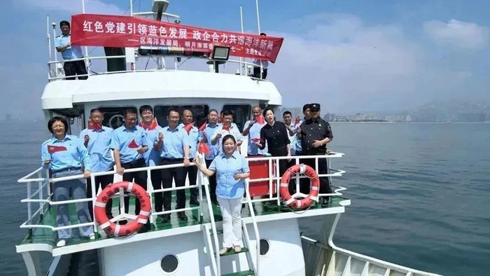 6月30日上午,青島明月海藻集團黨委與黨建聯建單位區海洋發展局機關黨委,立足業務特點,相約蔚藍海洋,開展“紅色黨建引領藍色發展,政企合力共譜海洋新篇”主題黨日活動。區海洋發展局機關黨委副書記王淑芳,集團黨委委員、工會主席徐玉強,工會副主席、黨政辦公室總監楊曉菁,與來自集團各黨支部的近20名黨員代表參與本次活動。