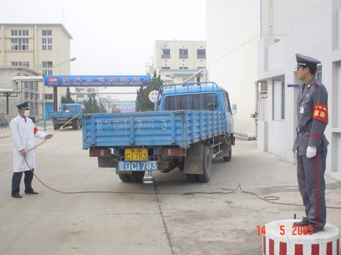 2003.5公司對出入車輛進行消毒