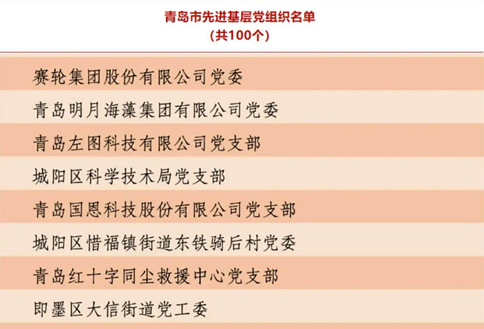 明月海藻集團(tuán)黨委榮獲“青島市先進(jìn)基層黨組織”稱號